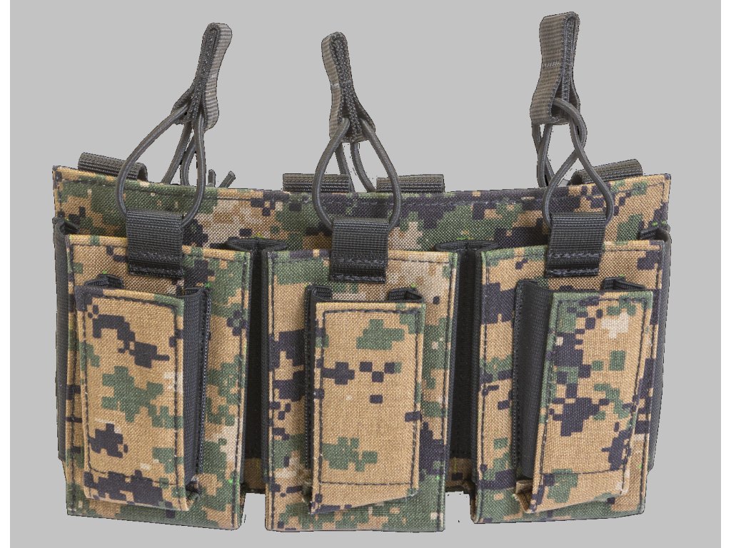 Jsou plně kompatibilní se systémem MOLLE/PALS a zvládají širokou škálu zásobníků
